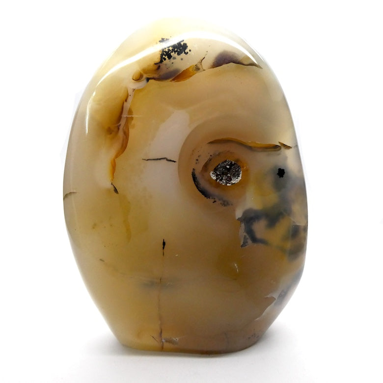 A fine example of Agate from Madagascar. Some. Some Dendritic inclusions of Iron and Manganese Oxides ( Brown and Black ) The smooth Free form shape is wonderfully relaxing to hold.