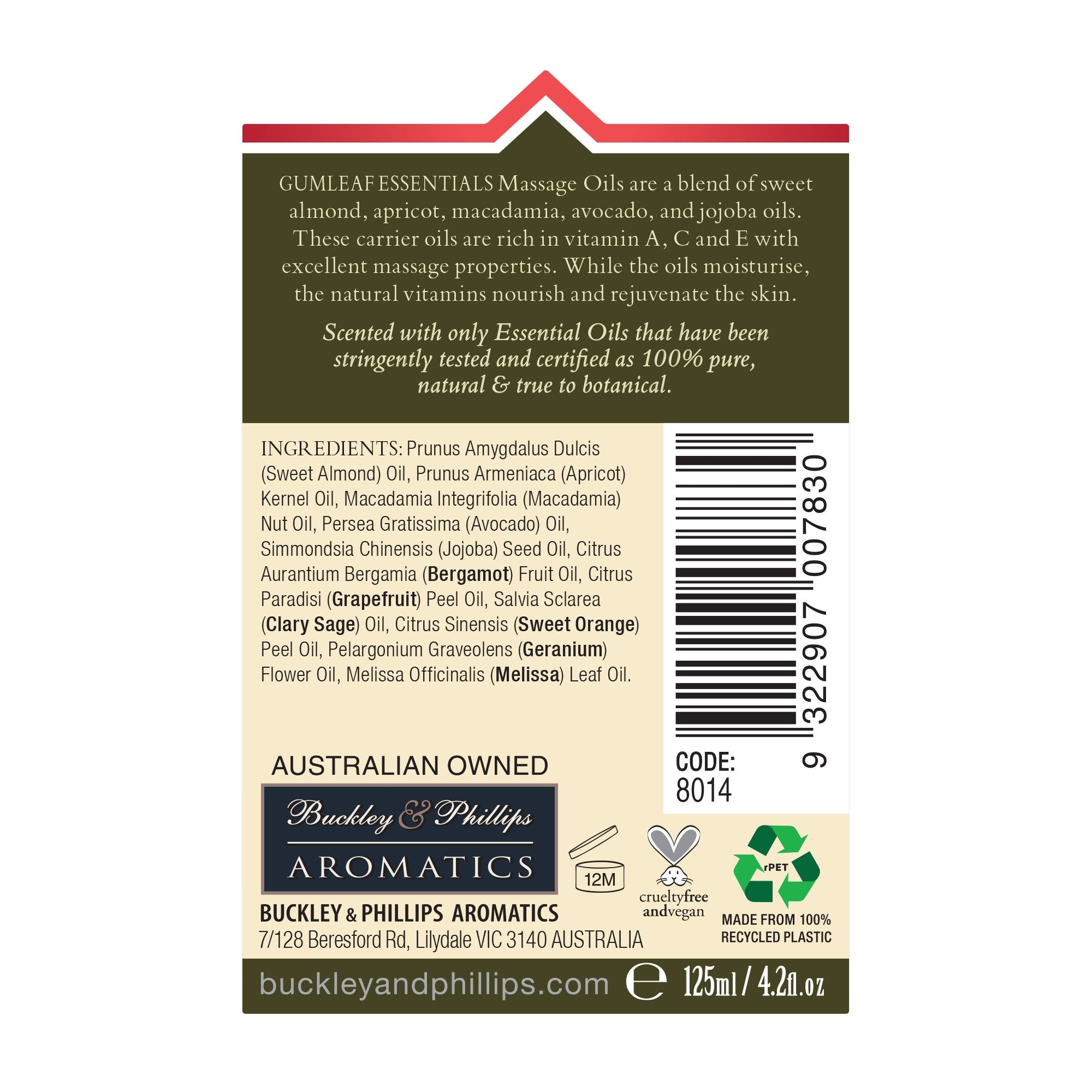 Essentials Massage Oils are made from a blend of Apricot, Almond, Avocado & Jojoba oils - rich in vitamin A,C and E with excellent massage properties. While the oils moisturise, the natural vitamins nourish and rejuvenate the skin. Scented with only essential oils that have been stringently tested and certified as 100% pure & natural.