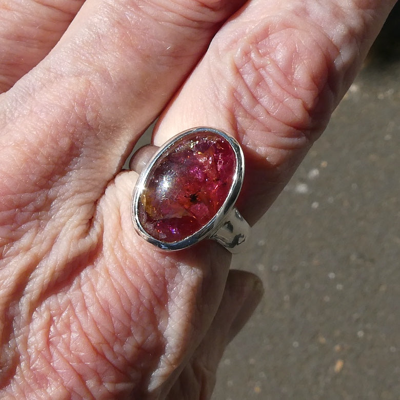 The ring has been beautifully made in Pauls' Workshop using 95 % pure silver. Although it has to be stamped 925 you can see the extra brightness. The deep bezel has also been curved underneath to make for a more comfortable fit on the finger and the band has been smoothed by hand to make a seamless fit with the Bezel.