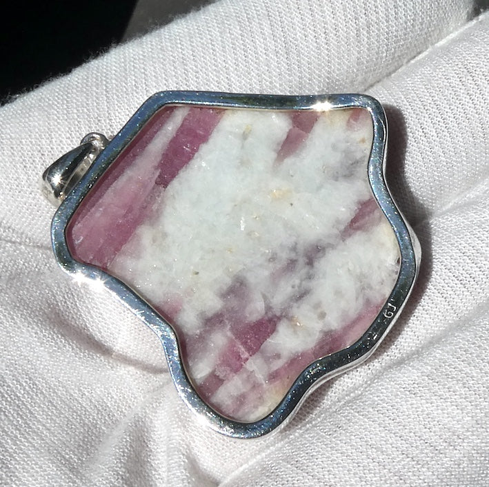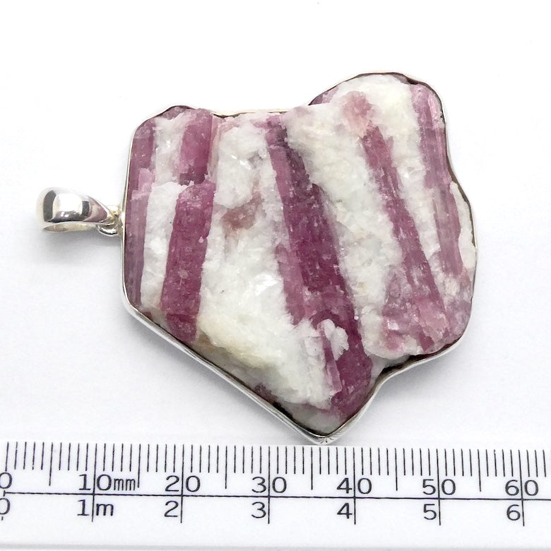 Pink Tourmaline Pendant, Raw Crystal in White Quartz, 925 Silver, p2