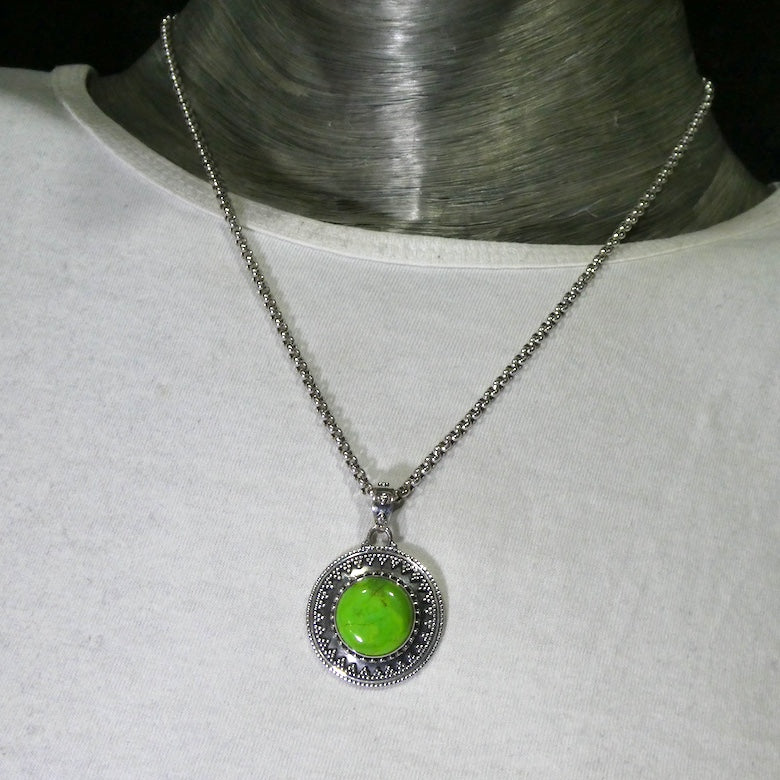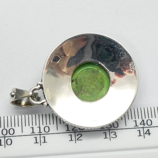 Green Turquoise Pendant, Mojave, Round Cabochon, 925 Sterling Silver, r4
