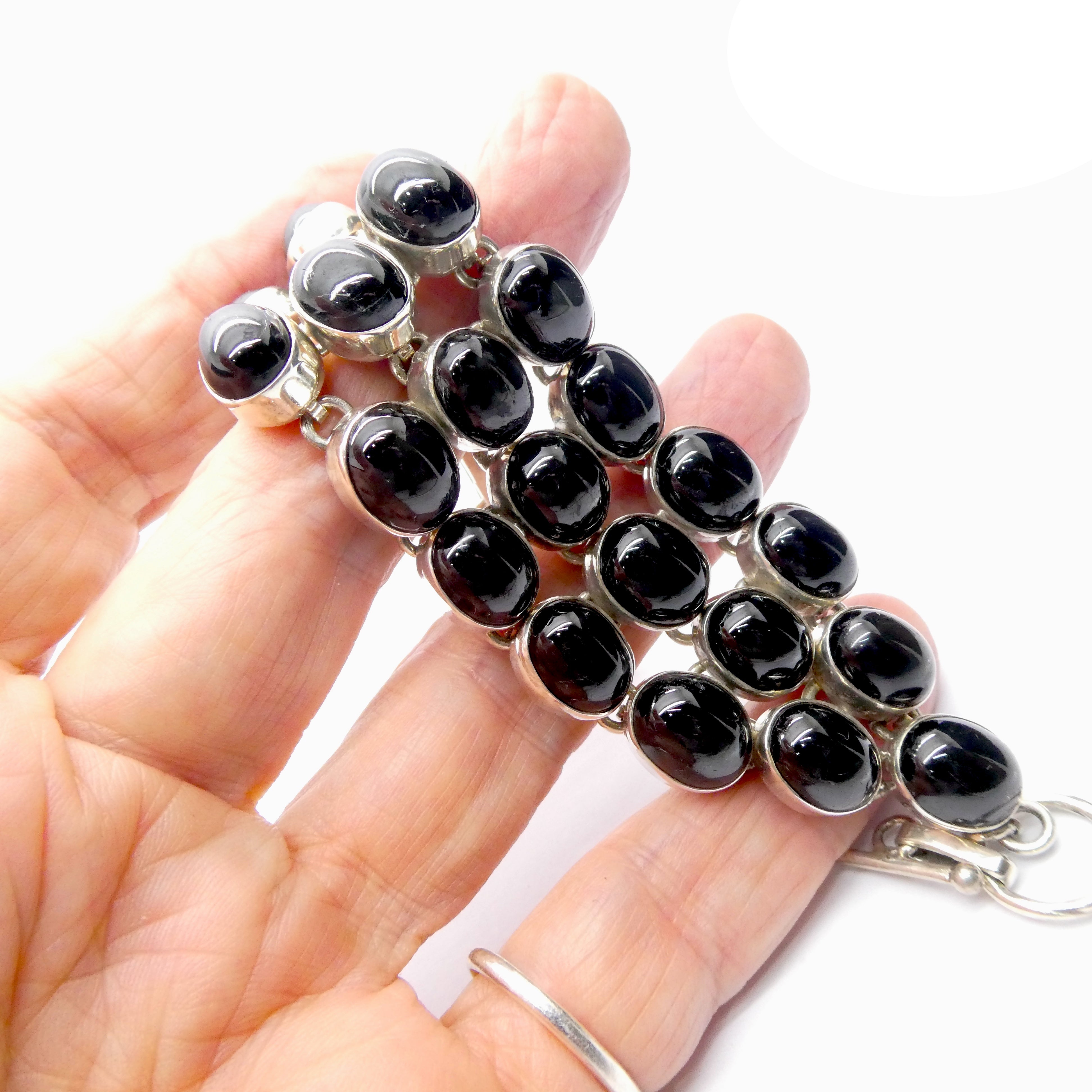 Black Star Sapphire Bracelet, 21 Ovals, 925 Sterling Silver