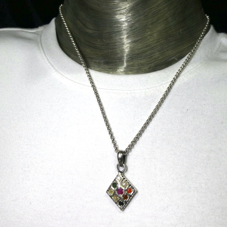 Navrattan Pendant with Planetary Gemstones, 925 Silver