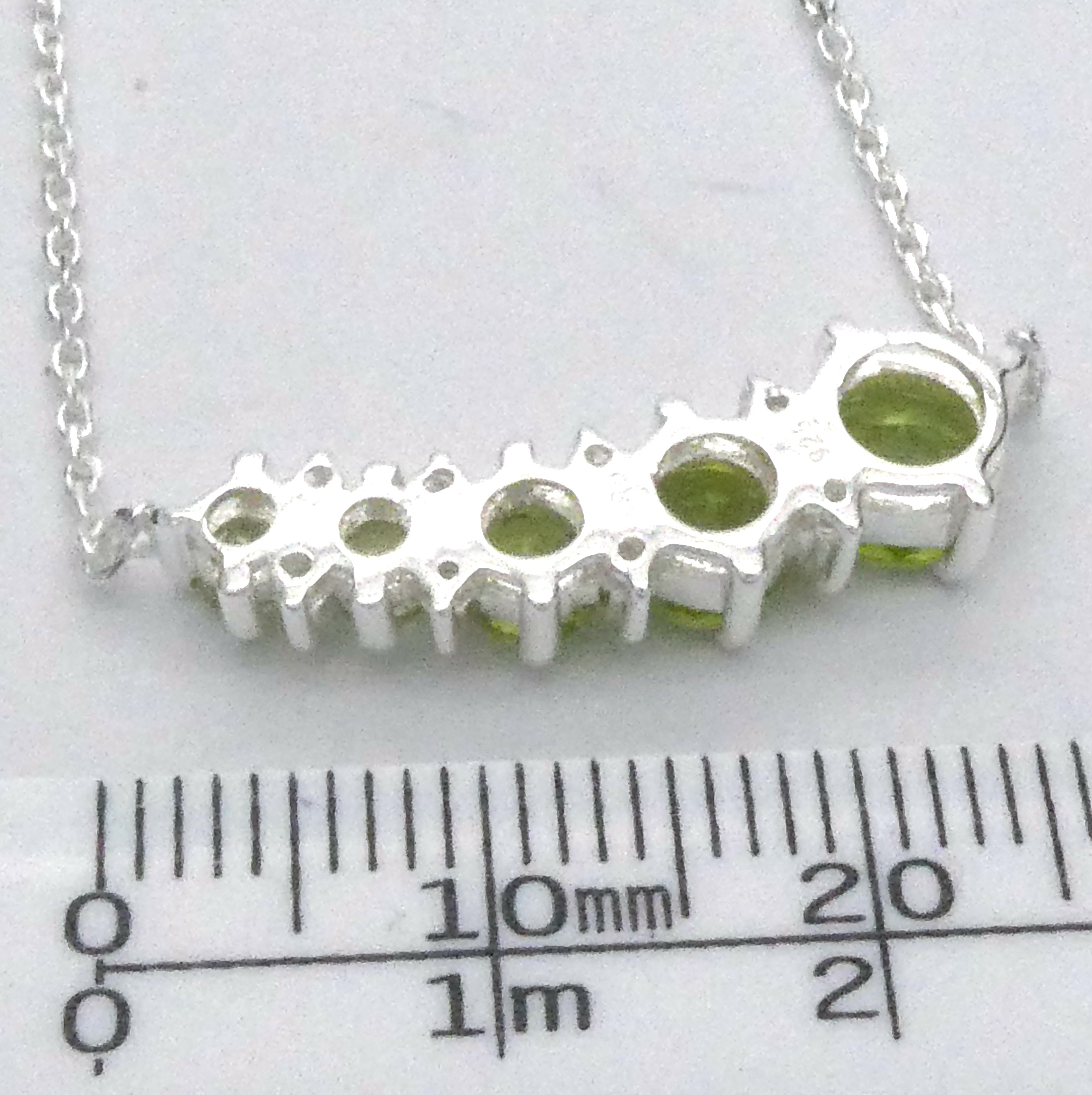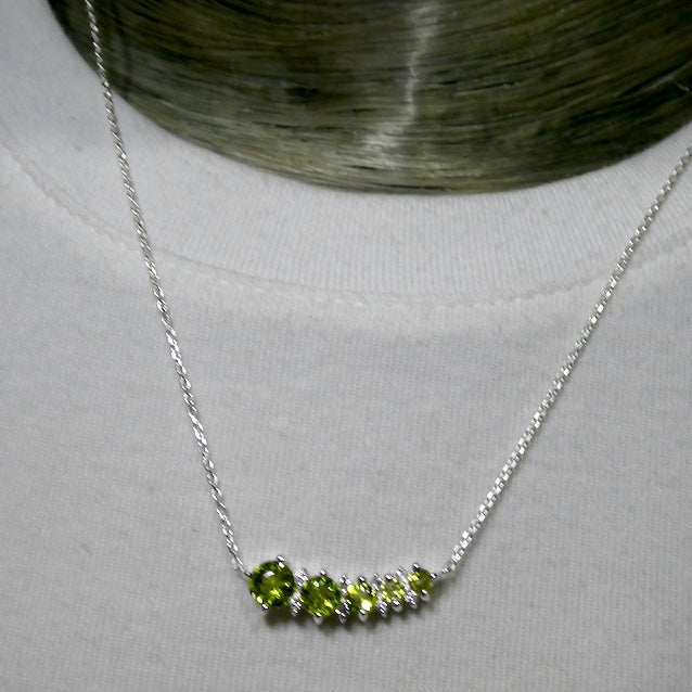Peridot Comet Necklace, 5 Faceted Rounds, Fine Chain, 925 Silver